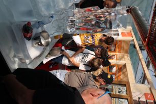 Mit den aus Eis geschnitzten Pinguinen sowie der "eisigen" Wanne und der Shot-Maschine, welche fleissig Appenzeller Alpenbitter ausschenkte, genossen wir grossen Zuschauerandrang. Vorallem die kühlende Wirkung unseres Eisgebildes fand grossen Anklang und viele kühlten ihre Hände am Eis.